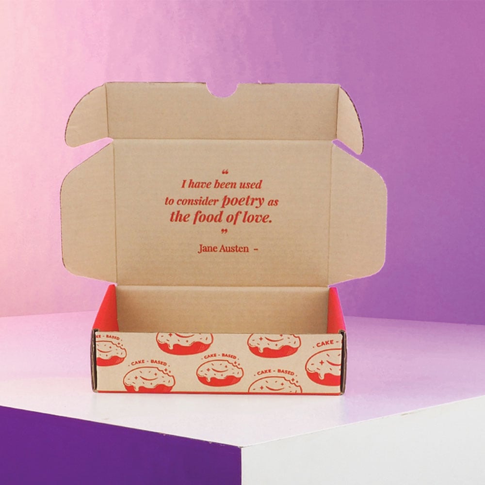 กล่องหูช้าง กล่องโดนัท DOUGHNUT LIBRARY ผลิตจาก กระดาษลูกฟูกพรีเมียม พิมพ์ลายทั้งด้านนอกและด้านใน เพื่อเพิ่มความโดดเด่นและดูอบอุ่นให้กับแบรนด์เบเกอรี่ เหมาะสำหรับ บรรจุภัณฑ์โดนัท DOUGHNUT LIBRARY ที่ต้องการดีไซน์น่ารัก หรูหรา และสร้างประสบการณ์พิเศษให้ลูกค้าทุกครั้งที่เปิดกล่อง